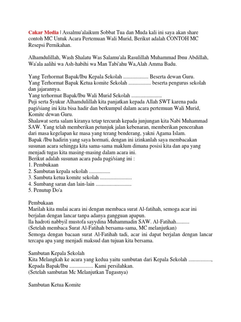 Naskah Pembawa Acara Rapat - Teks Pembawa Acara Pdf : Check spelling or type a new query.